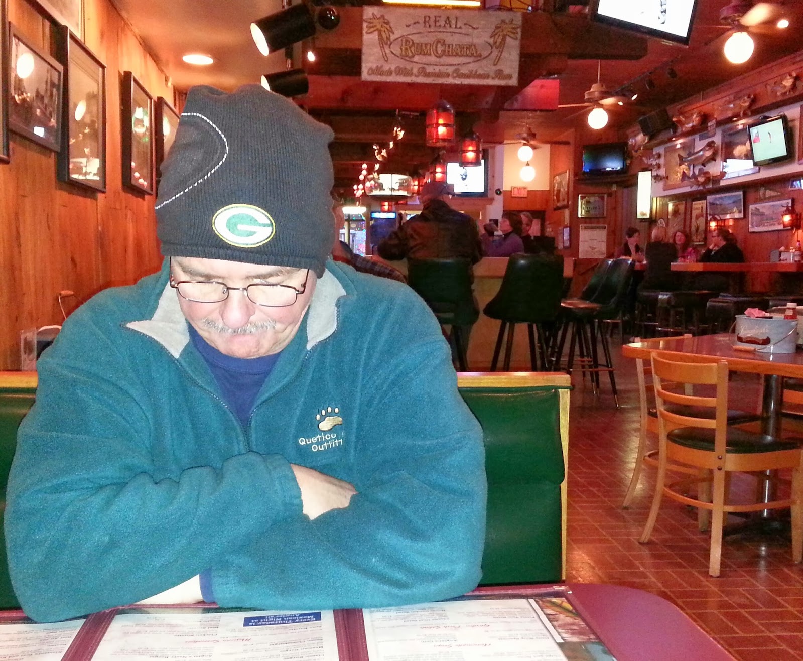 After we sat down to eat I noticed Fisherhubby was the ONLY one in the entire place wearing a hat.