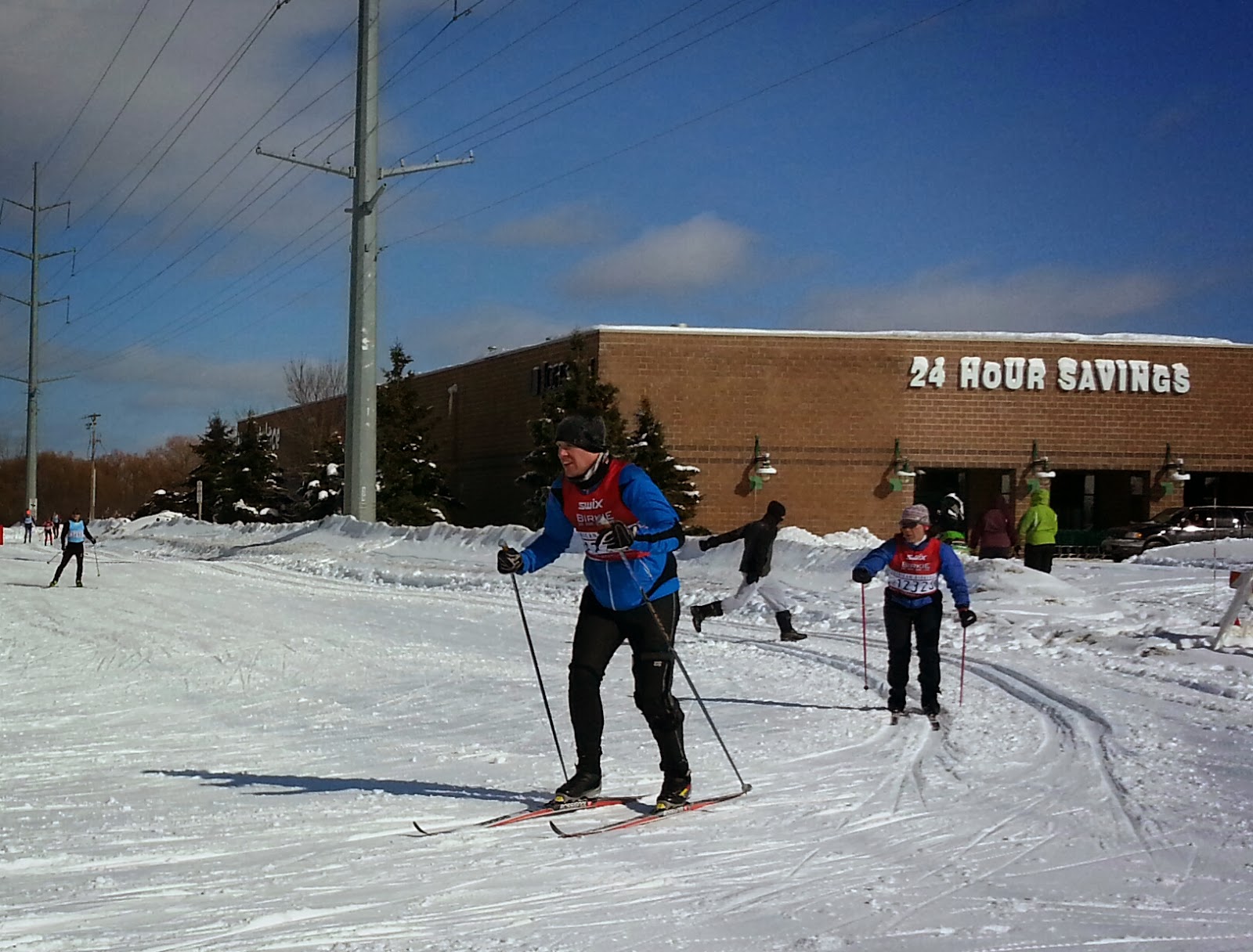 These Birkie cross country skiers ski over hill and dale all the way from Cable to Hayward. (look on a map) That's a 30 mile track for skate skiers and 32 miles for classic.