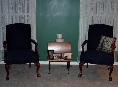 Hubby's been at it again. This time his paint brush held a lush verdant green. The next phase of this project will be cream chair rail and crown moulding. (Editor's update: crown moulding and chair rail have yet to appear - - - but hey, it's only been two and a half years!)